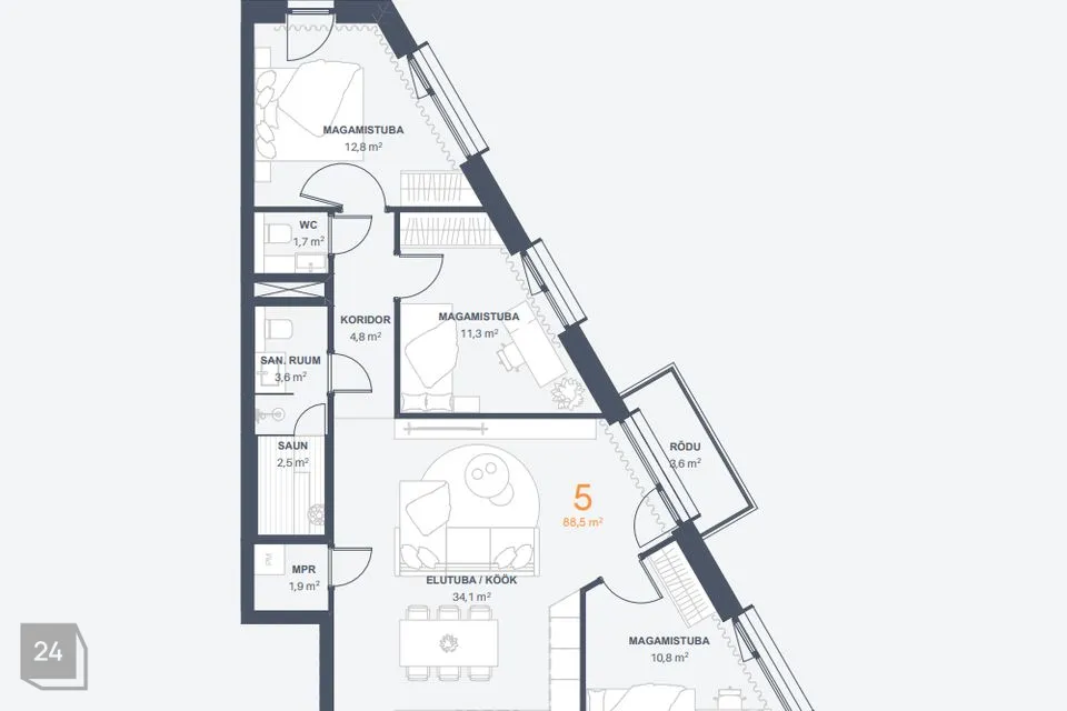 - Klaasitud rõdu (4.2 + 3.6 m2)