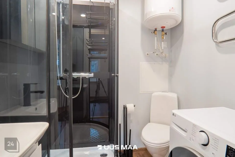 Korterit kütab soklikorrusele paigutatud õhk-soojus pump ja sooja vett saab elektriboilerist, olemas niiskuseemaldi.