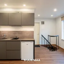 Minimalistliku ja nutika planeeringuga korterisse sissepääsu korrusel on avatud ruumina esik, kööginurk-elutuba ja wc/vannituba. Soklikorrusel asub magamistuba. Kahe korruse vahel keerdtrepp.