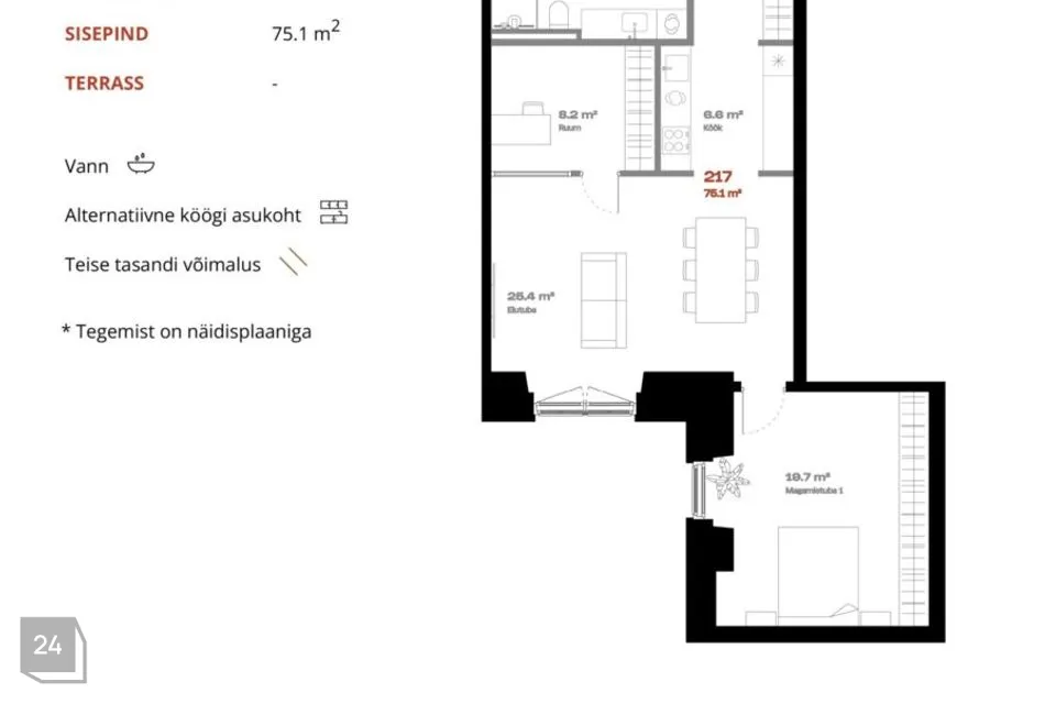Vali tava- või erilahendusega planeeringute vahel. Korteri kõrged laed annavad võimaluse kodule lisada teine tasand! Lisaks, saab muuta ka köögi asukohta.