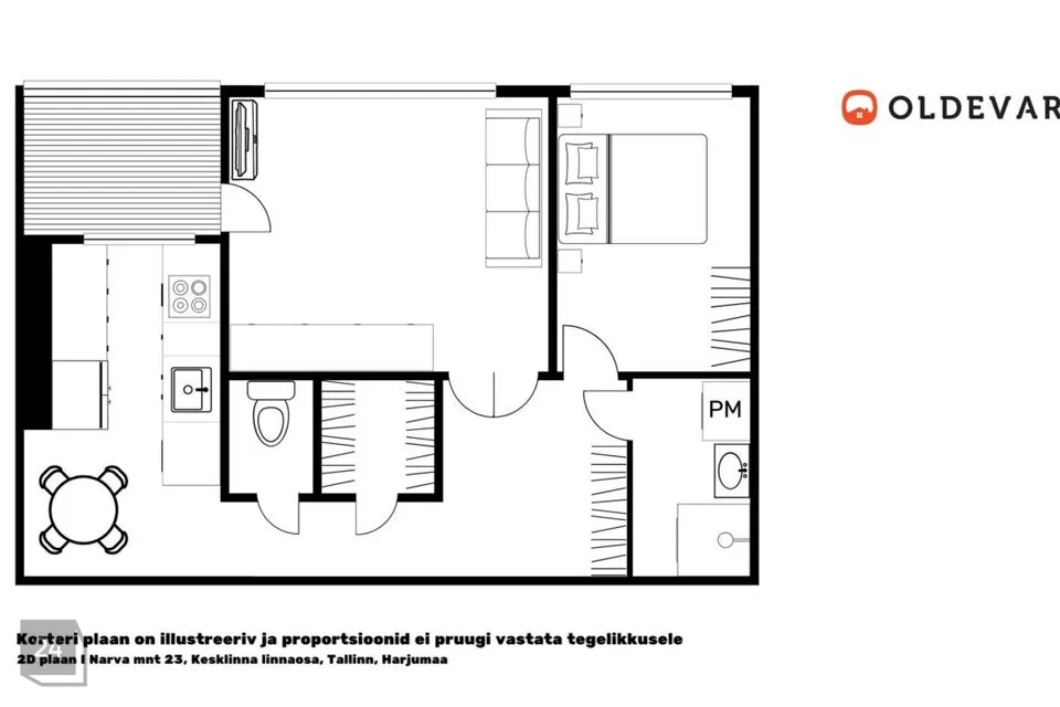 Pakkuda 1979 ehitatud kortermajas värskelt renoveeritud 2-toaline korter, Tallinnas, kesklinna linnaosas, aadressil Narva mnt 23.