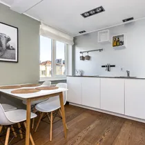 Köögis on olemas nõudepesumasin, keraamiline pliit, kubu, elektriahi ja külmkapp. Vannitoas on olemas pesumasin ning võimalus kasutada elektrilist põrandakütet.