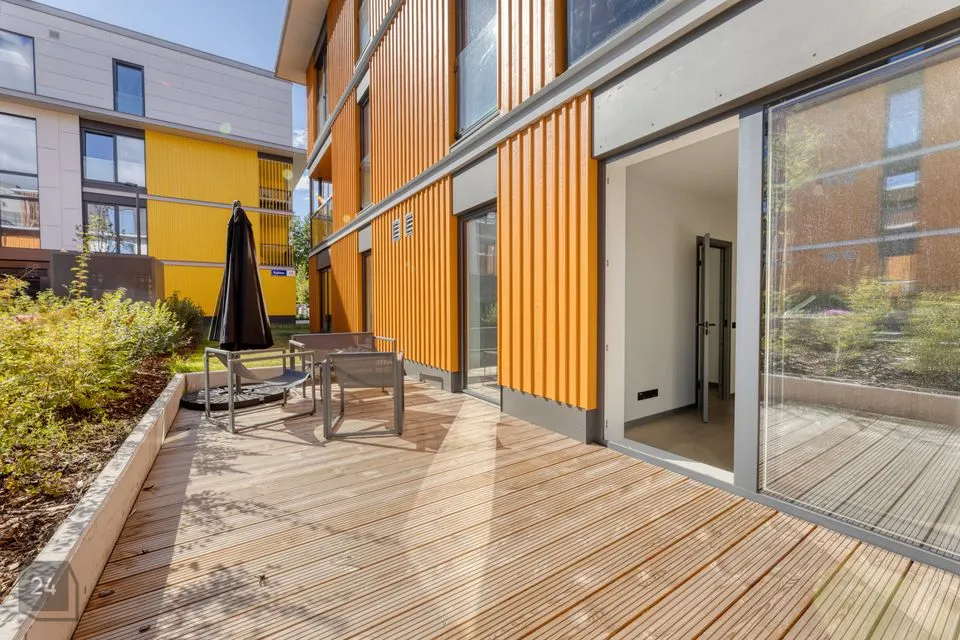 Esimese korruse korterid, mille krooniks on terrassid, on paljude inimeste jaoks justkui täide läinud unistus. Iga terrass on nutikas eluruumi laiendus, kus nautida hommikukohvi, pidada õhtusööke sõpradega või lihtsalt värskes õhus puhata. Seda kõike hetkekski oma armsast kodust lahkumata. Suured maast laeni aknad täidavad korteri loomuliku valgusega ning avar planeering tagab mugava ja funktsionaalse ruumikasutuse.