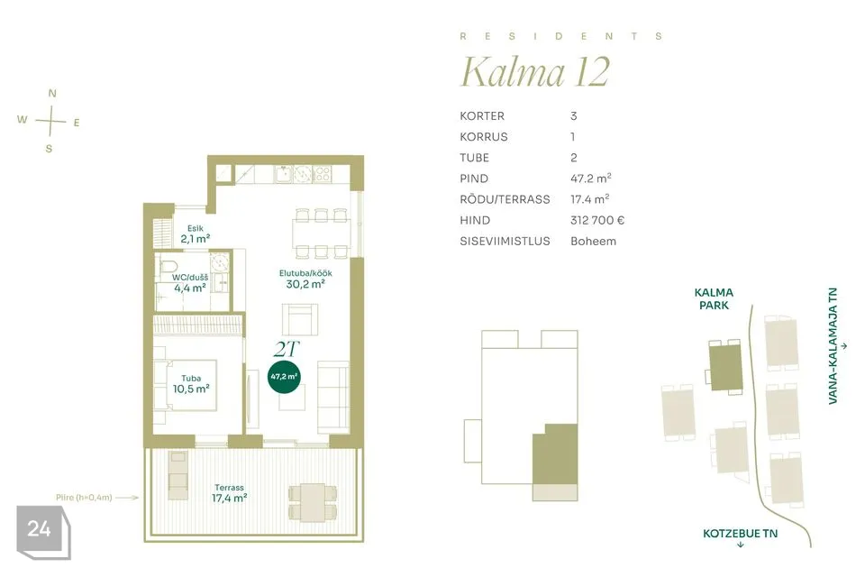 - A-energiaklassiga kaasaegne uusarendus Kalamaja roheluses