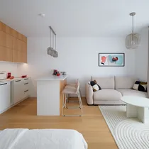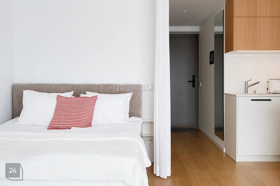 ARENDAJA: Selles detailideni läbimõeldud stuudiokorteris on kõik vajalik olemas: oma köögi-, magamis- kui puhkenurk. Planeering võimaldab magamisala eraldada ning pakkuda seeläbi lisa privaatsust.