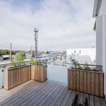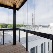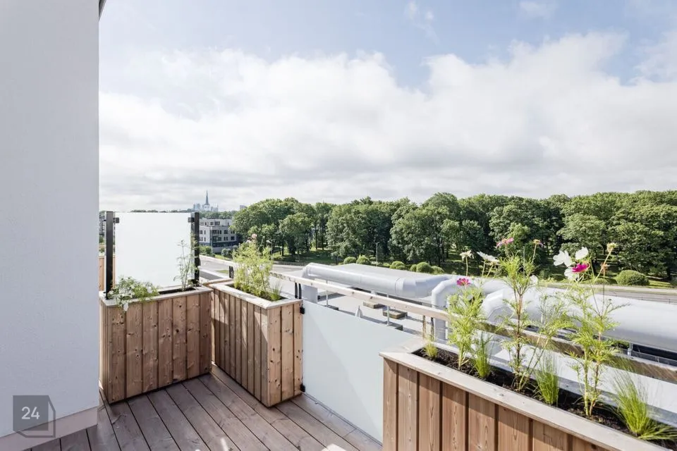 Korteri juurde kuulub päikese poolne katuse terrass, lisaks klaasitud rõdu, mis võimaldab nautida ilmast sõltumatult hommikukohvi või lõõgastuda õhtuti.