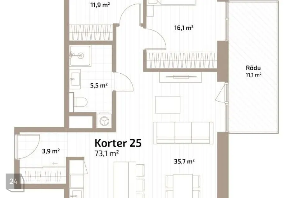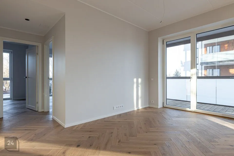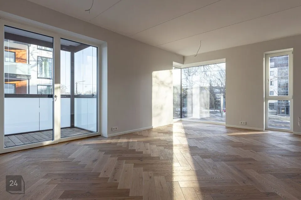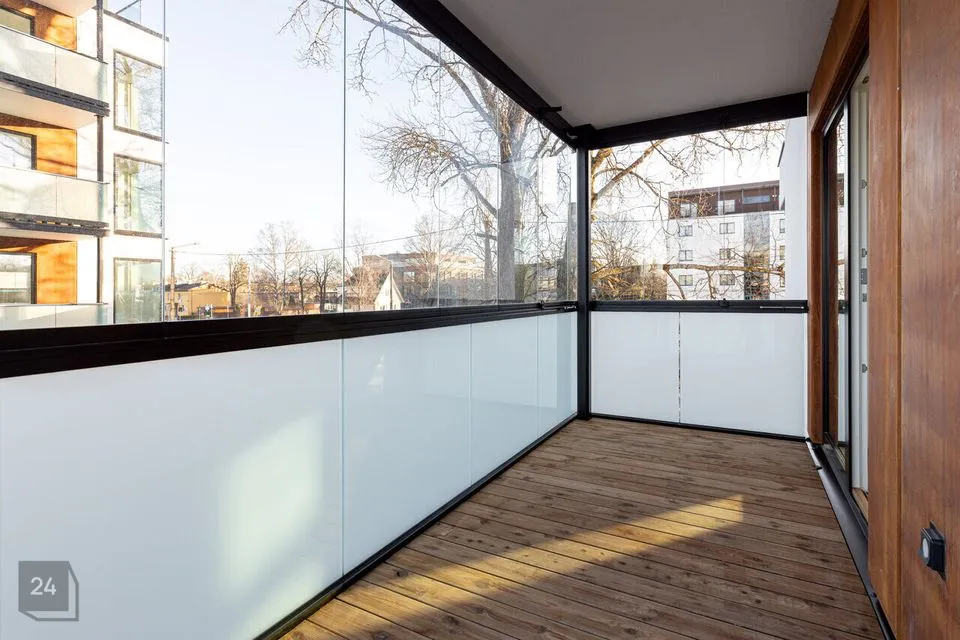 Korter üldpinnaga 73,1 m² paikneb modernse välimusega hoone teisel korrusel. Elutoast ja suurest magamistoast pääs üleni klaasitud rõdule suurusega 11,1 m². Korteris on maast laeni aknad, jahutuse valmidus ning targa kodu mugavused.