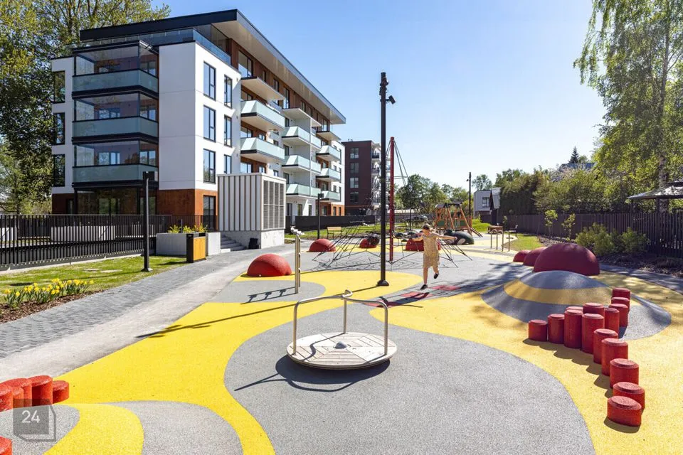 Kortermaja juurde kuulub privaatne aiaga piiratud sisehoov täis lopsakat rohelust. Lisaks mängu- ja puhkealadele on hoovis oma „kirsiaed“ külluslike viljapuudega.