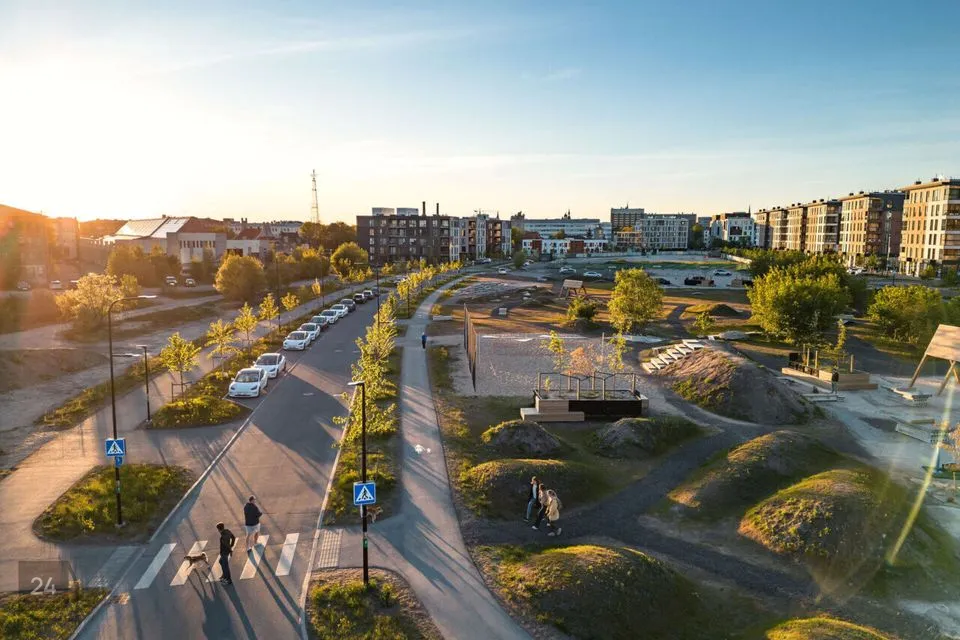 - Kvartali keskel kulgeb mitmekesise maastikuga vahepark, mis pakub hulganisti võimalusi sportimiseks ja vaba aja veetmiseks.