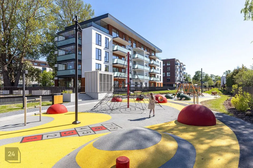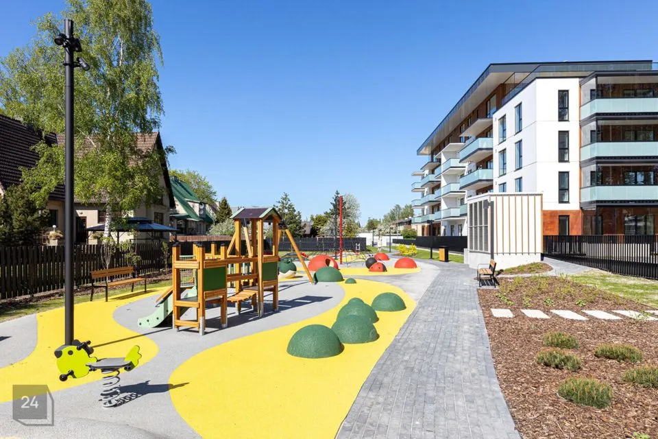 Kortermaja juurde kuulub privaatne aiaga piiratud sisehoov täis lopsakat rohelust. Lisaks mängu- ja puhkealadele on hoovis oma „kirsiaed“ külluslike viljapuudega.