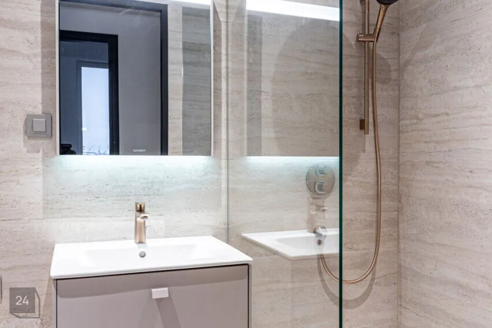 Space layout: 3 bedrooms, living room/kitchen, one of the bedrooms has a separate laundry room. The apartment includes a terrace, as well as a glazed balcony, which allows you to enjoy your morning coffee or relax in the evenings regardless of the weather.