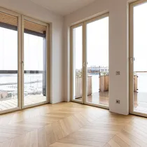 A 4-room apartment with a sea view overlooking the marina and the evening sun.