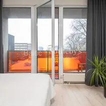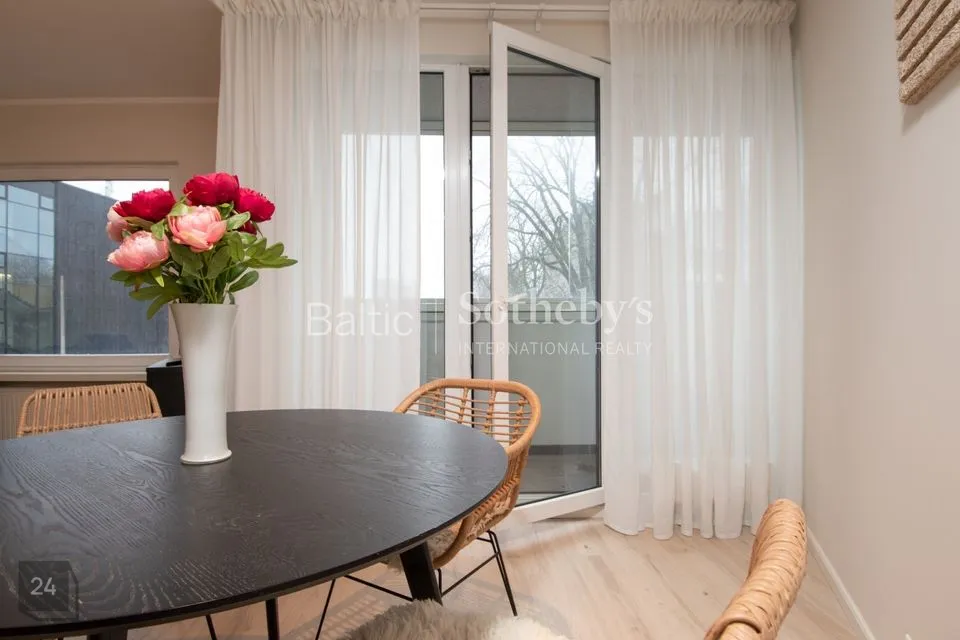 Köök koos elutoaga, kust pääseb klaasitud kinnisele rõdule. Magamistoast pääseb otse klaasidega piiratud rõdule. Mõlemad rõdud on kokku 6.3 m2.