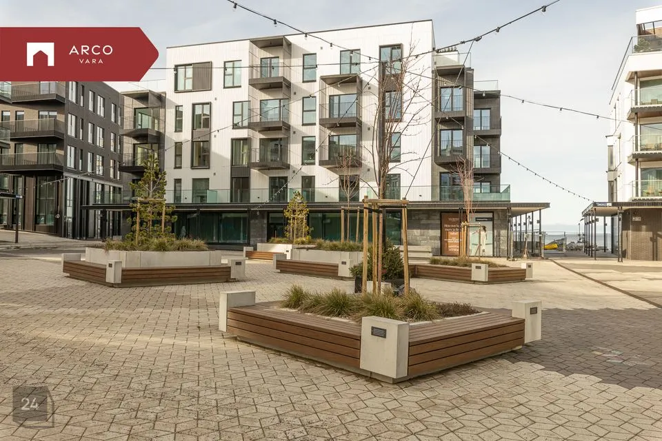 Terviklikust elamukvartalis on maa-alune parkla, kaunid sisehoovid, lastemänguväljakud, võrkpalliplats, liivane mererand ning jalakäijate promenaad.
