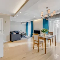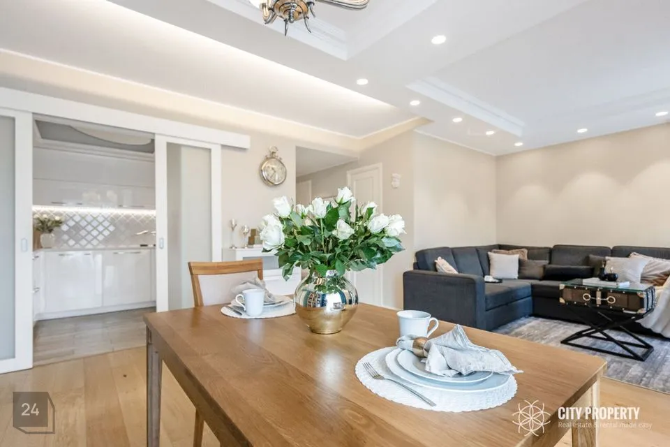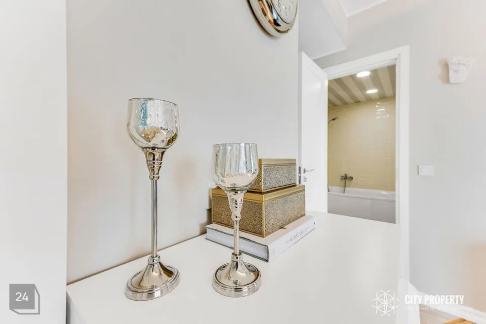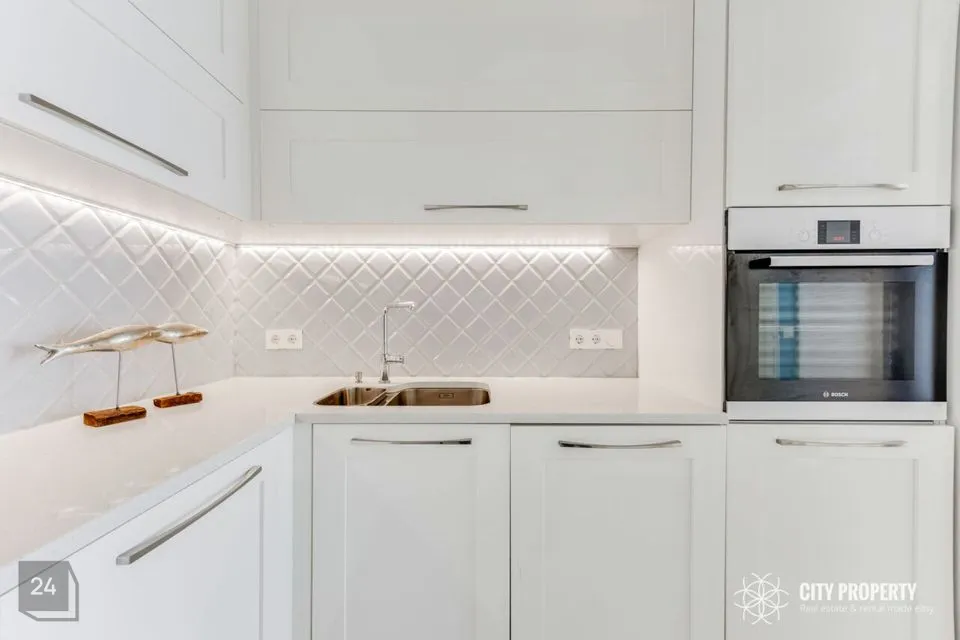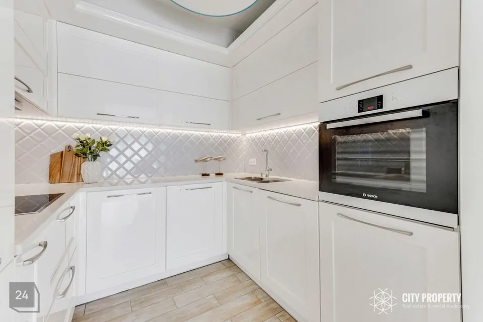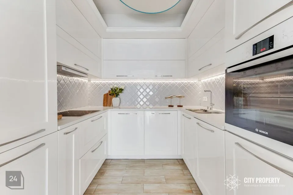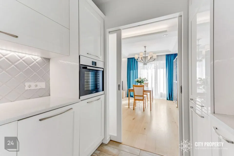 Kivitasapinnaga köök on kvaliteetne ning funktsionaalselt sisustatud, olemas on Boschi külmkapp, pliit, ahi ning nõudepesumasin, esikus mahukas garderoobikapp, laes kvaliteetsed disainlambid firmadelt Morosini ja Eichholtz.