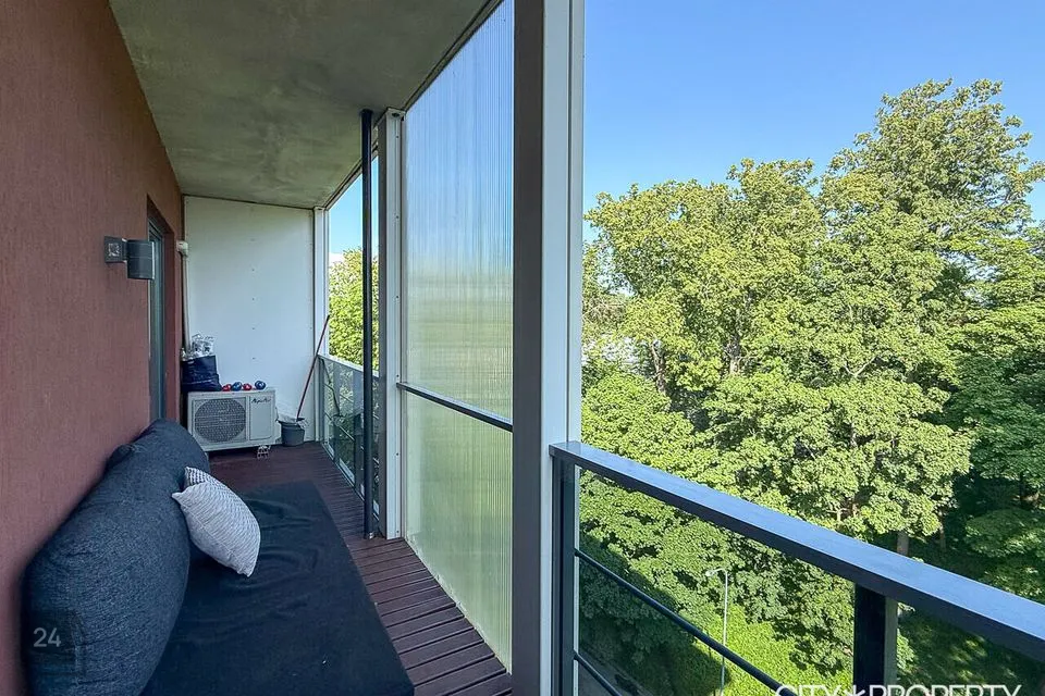 Müügile on tulnud stiilne 3-toaline korter Pärnu mnt 104a majas, nurgapealne korter asub maja seitsmendal korrusel ning on väga hea planeeringuga, korteri köetav pind on 69.7 m2, millele lisandub 10.5 m2 suurune rõdu, millelt avanevad ilusad ja rohelised vaated.