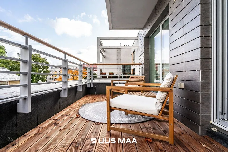 KORTER: Arhitektide Irina Raua ja Ain Kalbergi poolt projekteeritud korter pakub stiilset ja valgusküllast elukeskkonda. Korteri suurus on 72,1 m² ning see koosneb avarast esikust, mahukatest garderoobikappidest, valgusküllasest avatud köögiga elutoast, kahest rõdust, päikeseterrassist, kahest magamistoast ning luksuslikust vannitoast, kus olemas nii vann kui ka dušinurk. Korter müüakse koos kogu kvaliteetse sisustuse, valgustite ja tehnikaga.