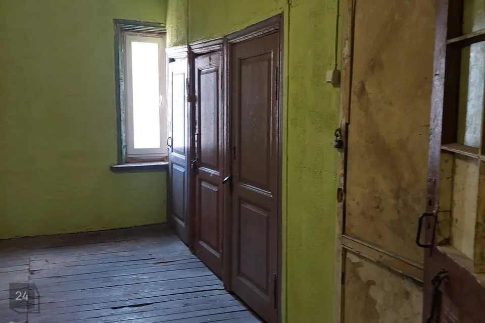 Комната 20м2, большая ,квадратная. Электричество есть, вода холодная в комнате, дровяная печь -требуется полная реновации.Wc в коридоре. Соседи спокойные.