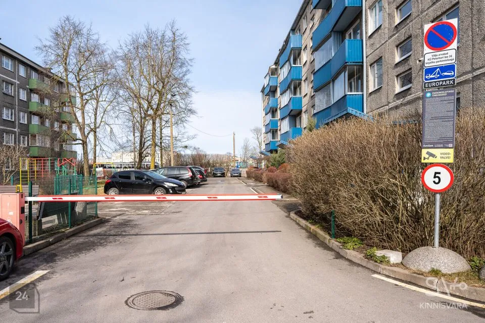 Maja ees asub tõkkepuuga suletud parkla, kus on piisavalt kohti kõikidele elanikele.