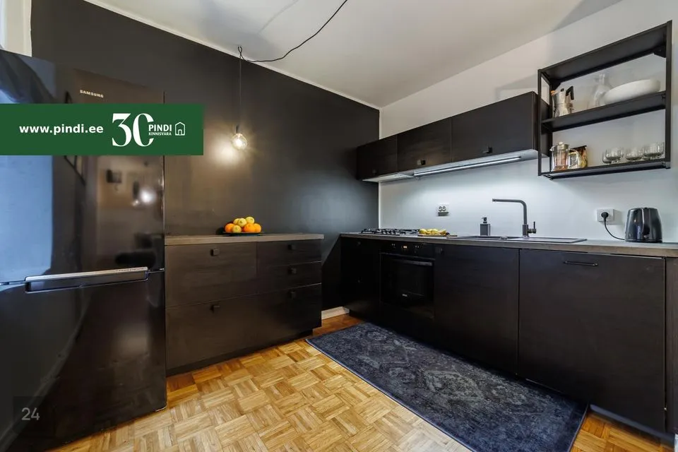 Köök on varustatud kogu vajaliku tehnikaga (pliit, ahi, õhupuhasti, nõudepesumasin, külmik). Korteri viimistlus on värske ja väga heas seisukorras – põrandatel on naturaalne parkett, vannituba on plaaditud. Mõnusat lõõgastust pakub 0. korrusel asuv saun.
