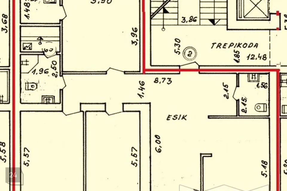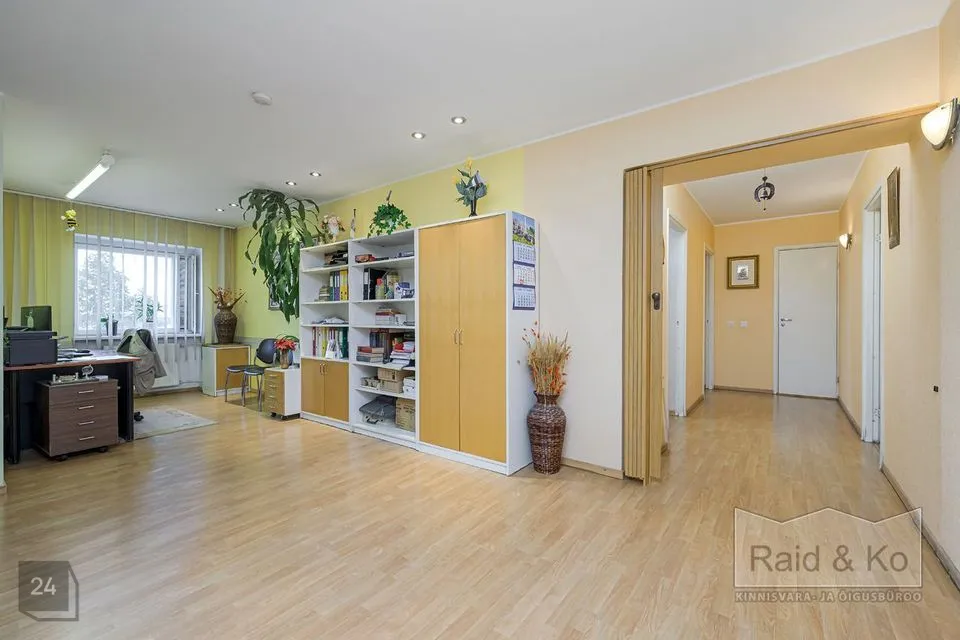 Tegu on avara, läbi maja planeeringuga 4- toalise korteriga (EHR -s kirjas 5 tuba). Hetkel kahe toa vahel uks eemaldatud ja vaheseina ava tehtud suuremaks (vt. joonist!).