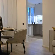 Hinna sees: uus köögimööbel koos integreeritud tehnikaga, diivan, laud toolidega, mahukas garderoob.