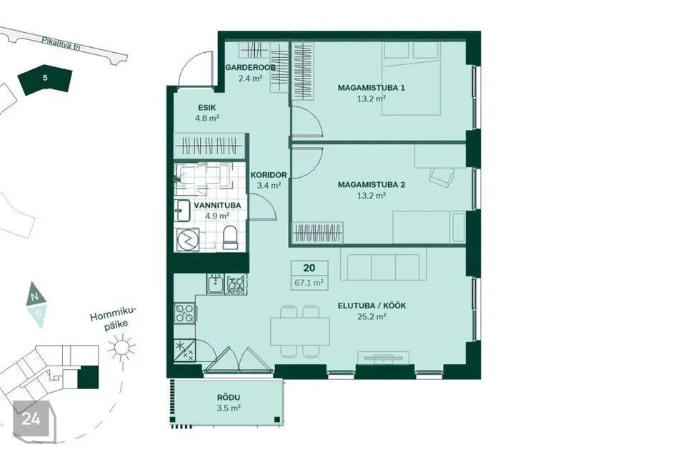 Pikaliiva Kaarmaja neljast elamust moodustub kaunis poolkaar, mille keskmeks on hubane hooviala. Igal kodul on rõdu või terrass, kus nautida rahulikke puhkehetki kohvitassi ja hea raamatu seltsis. Õdusas reljeefse maastikuga sisehoovis ootavad elanikke puhkeala ja mänguväljakud igas vanuses lastele. Naabritega koosolemist ja elu nautimist pakub päikesele avatud grilli- ja puhkeala koos piknikulaudade, väligrilli ja pergolaga. Parkimiskohad asuvad nii väliparklas kui ka maa-aluses parklas, mis lisab hoovile ruumi ja avarust. Pikaliiva elamud teevad energiasäästlikuks ja kaasaegseks päikesepaneelid ning nutikodu lahendus.