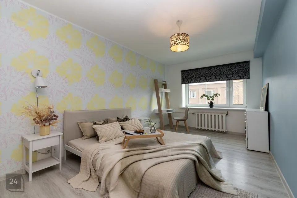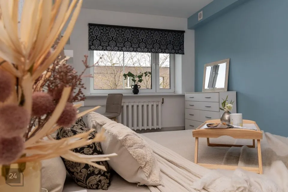 Elutoas on olemas suur diivan, magamistoas kõik eluks vajalik sisustus. Suuremas magamistoas on olemas voodi, kummut ja öökapid ning ühe seina ulatuses väga mahukas liugustega garderoobikapp. Põrandaid katab hele laminaat.