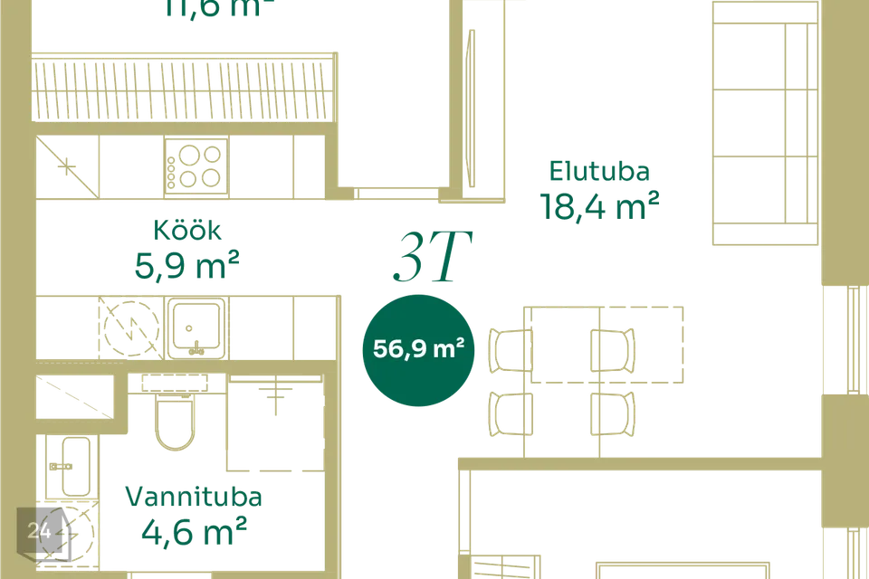 Selles 3-toalises kodus on olemas kõik mugavused, mida üks perekond vajab – valgusküllased maast laeni aknad, mõnus elutuba, millelt pääseb oma armsale rõdule ning piisavalt ruumi pikale esikukapile. Siinse kodu köök on avatud, ent peidab endas võimalust eralduseks, et näiteks tekkinud segadus söögi nautimise hetkeks silma alt ära peita.