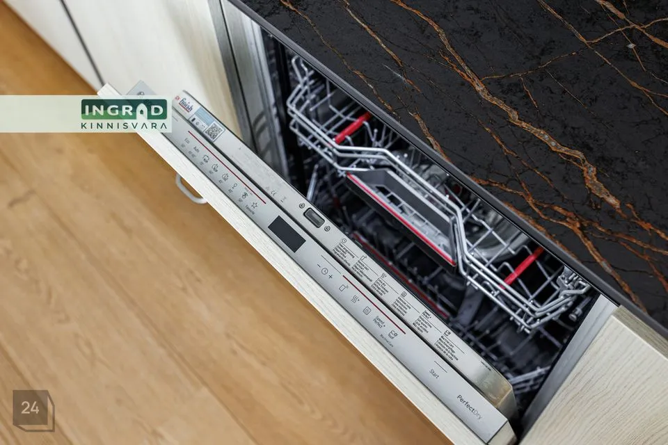 Kvaliteetne köögilahendus: sisseehitatud eritellimusel köögimööbel ja tippklassi tehnika, sh Bosch nõudepesumasin, Bosch ahi ning induktsioonpliidiplaat koos integreeritud õhupuhastajaga (BORA). Kõik seadmed jäävad uuele omanikule!