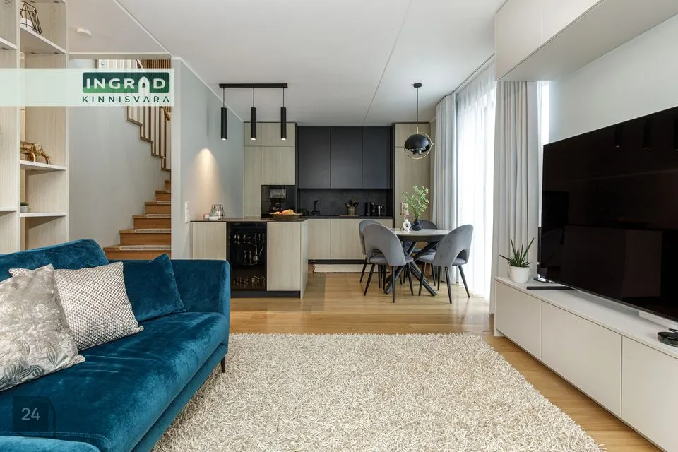 Kaasaegsed viimistlusmaterjalid: naturaalne parkett eluruumides, kvaliteetsed plaadid sanitaarruumides, hoolikalt valitud värvilahendused.