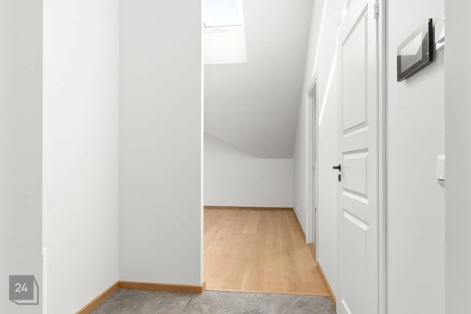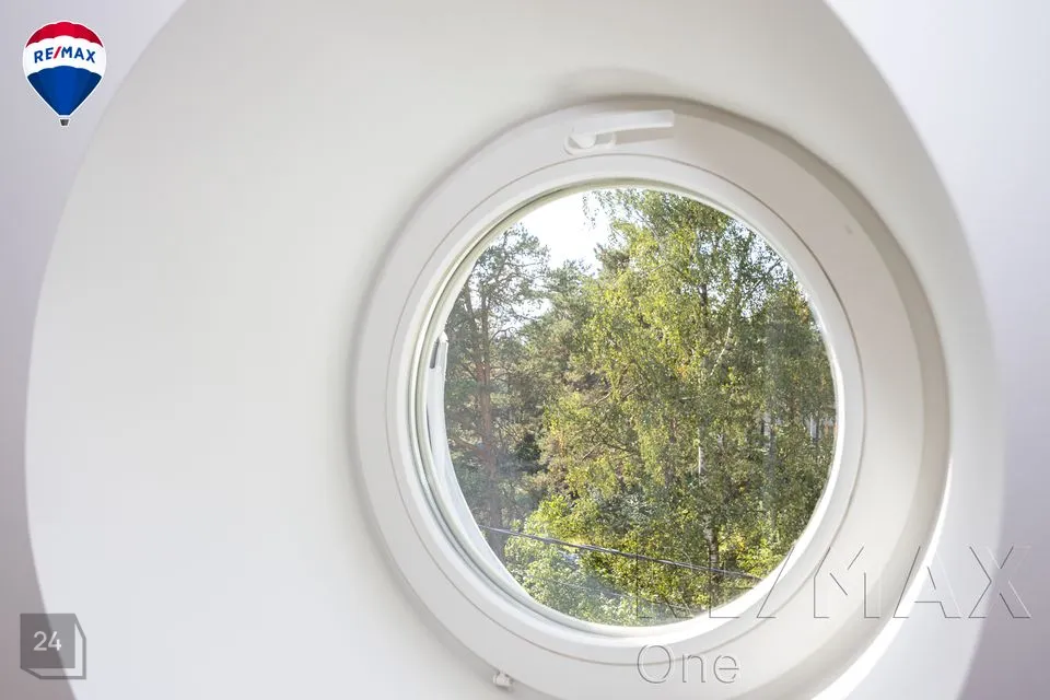 Korteri interjööris on põnevalt ära kasutud maja endist ümarat koridoriakent, kust avanevad nüüd toredad vaated naaberkinnistu õhtupäikeses mändidele. Katuseakendest tuleb aga korterisse valgust terve päeva. Kas teadsid, et katuseaknad toovad ruumi 5 korda rohkem valgust kui tavaaknad?! Et elutoas veelgi rohkem valgust oleks, on elutoa kaks katuseakent paigutatud kõrvuti - rohkem valgust ning lisaks ka efektne nüanss interjööris.
