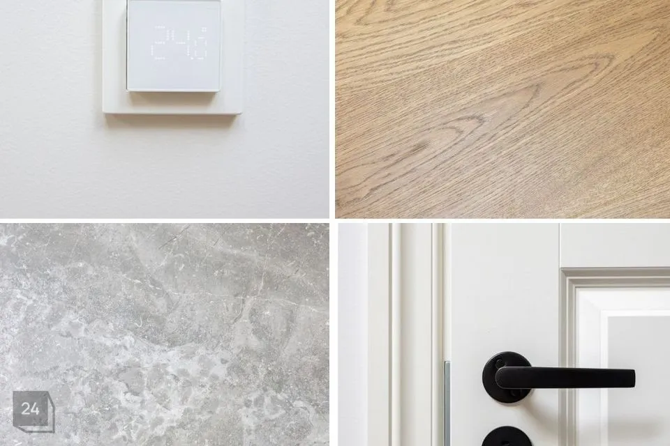 Korteri sisekujundus on lahendatud valge ja puidu kombinatsioonina, kontrastiks pisut musta ja halli. See jätab sulle vabad käed erinevateks sisekujunduslahendusteks ja erinevate värvidega mängimiseks.