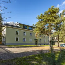Mändidest ümbritsetud ilus staliniaegne maja on just saanud kauni värske ilme ja C klassi energiamärgise.