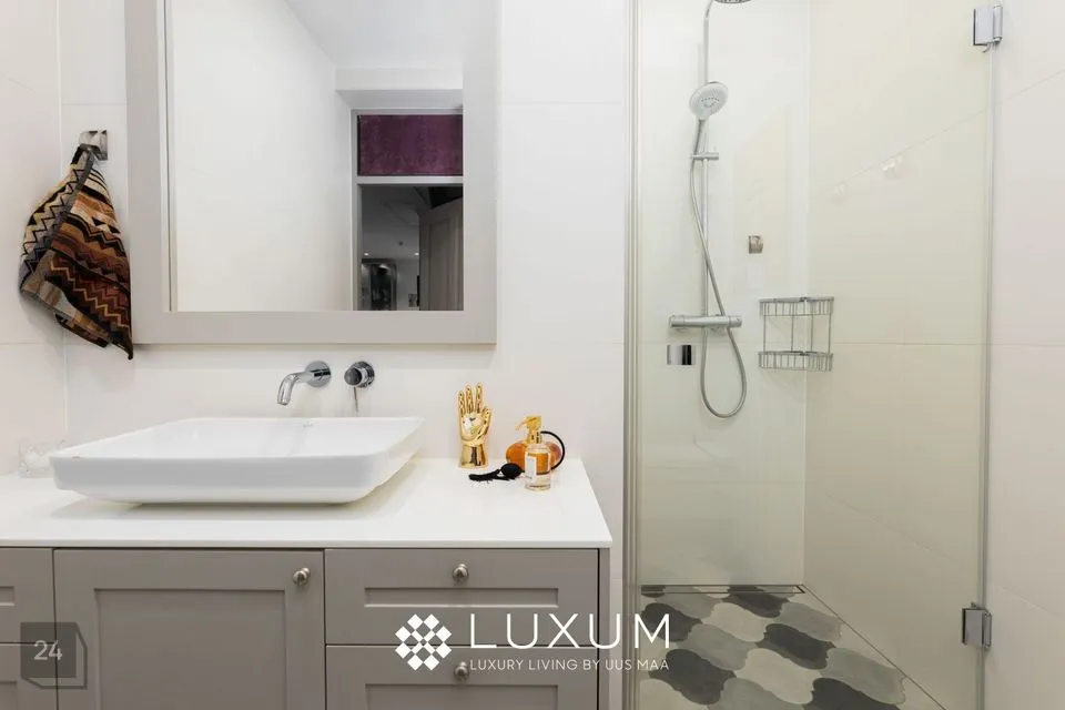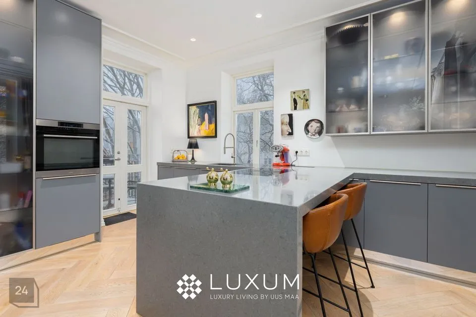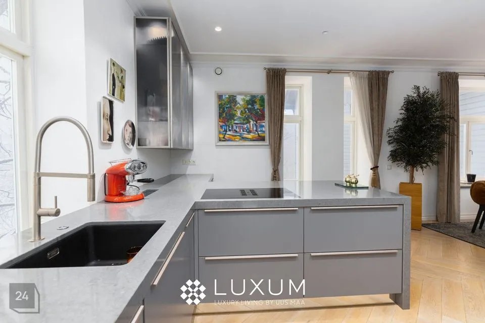 Kogu korteri siseviimistlus ning materjalid on hoolikalt valitud, kõik aknalauad on valmistatud marmorist. Naturaalne kalasaba parkett lisab korterisse autentsust ning hubasust.