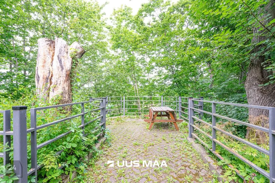 Majal oma privaatne krunt, mis on aiaga ümbritsetud.