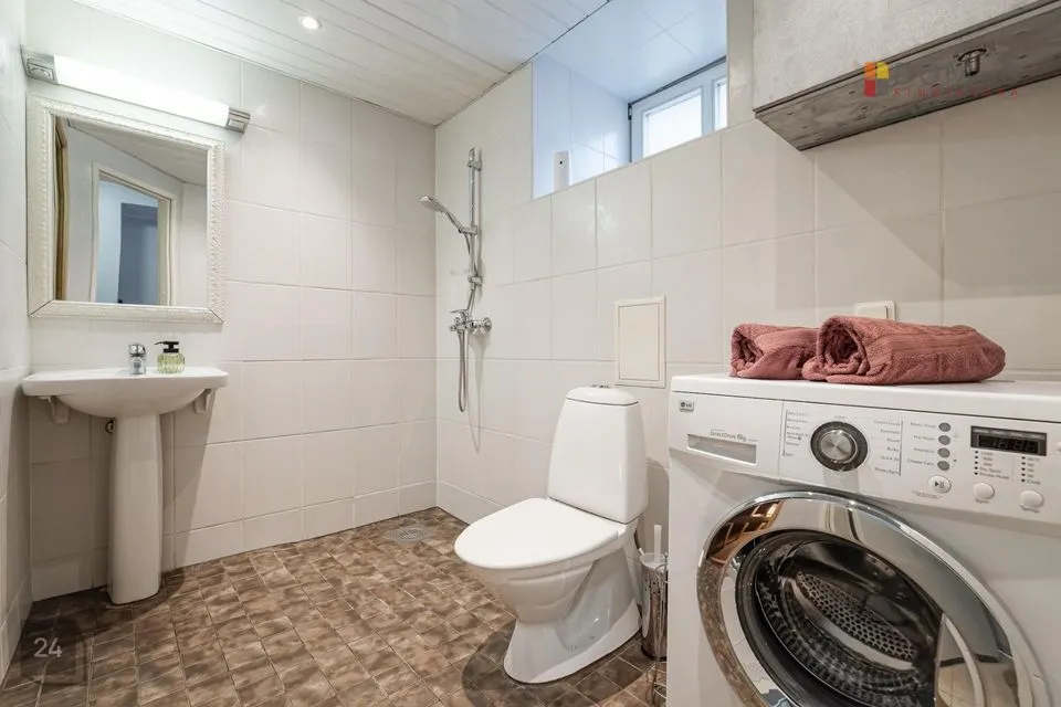 Planeeringult asub köök ja elutuba maja kõrgel 1.korrusel vaatega maja küljele ja hoovi poole ning pesuruumid maja soklikorrusel – seal on aknaga eesruum koos mahuka garderoobkapiga, samuti oma aknaga wc-vannituba ja ka saun! Soklikorrus on kõrge, soe ja kuiv, maja ümber on rajatud uus drenaažisüsteem. Keldrikorrusel on korteri kasutada üks panipaik.