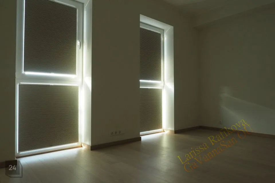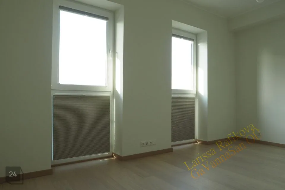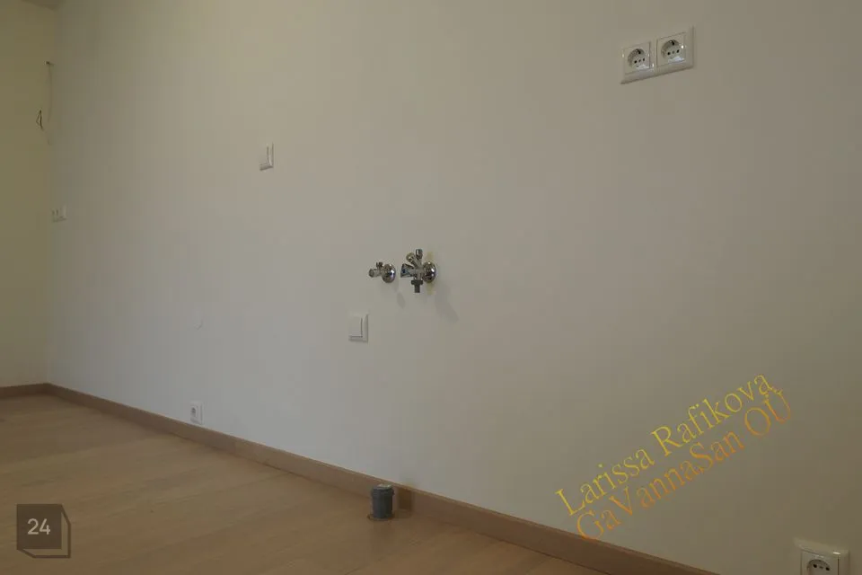 Põrandakatteks hele spoonitud parkett, uksed ja põrandaliistud sama värvi.