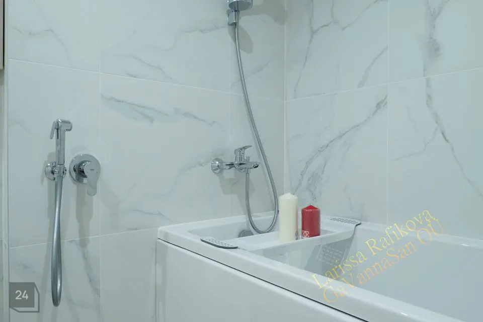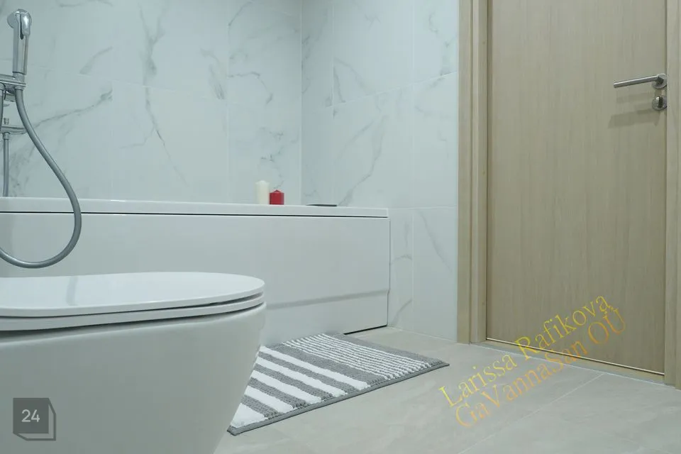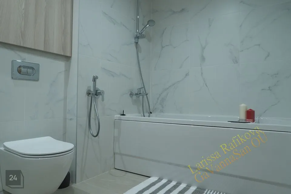 Vannitoas (5,8 m2) on suur ja sügav 170 Laufen vann,