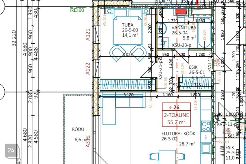 Avatud köögiga elutuba (köögimööbel tellitud) (28,7 m2)