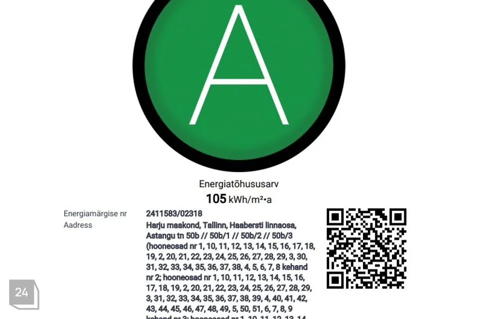 Korterelamute arvutuslik energiatõhususarv vastab energiamärgise klassile „A“, mis tagab madalad kasutuskulud.
