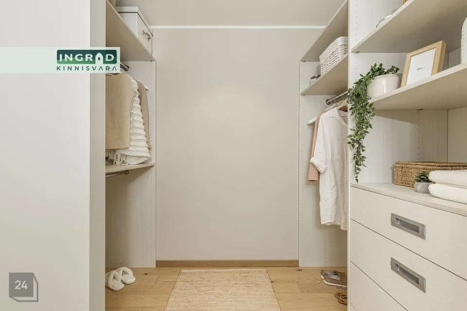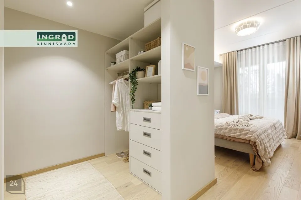Mugav magamistuba koos mahuka walk-in garderoobiga.