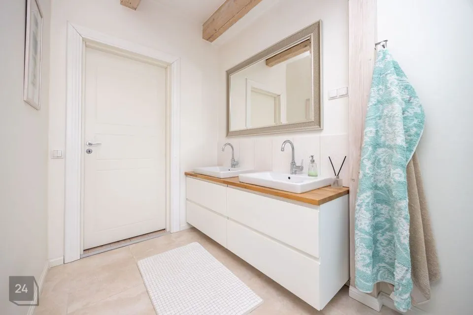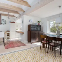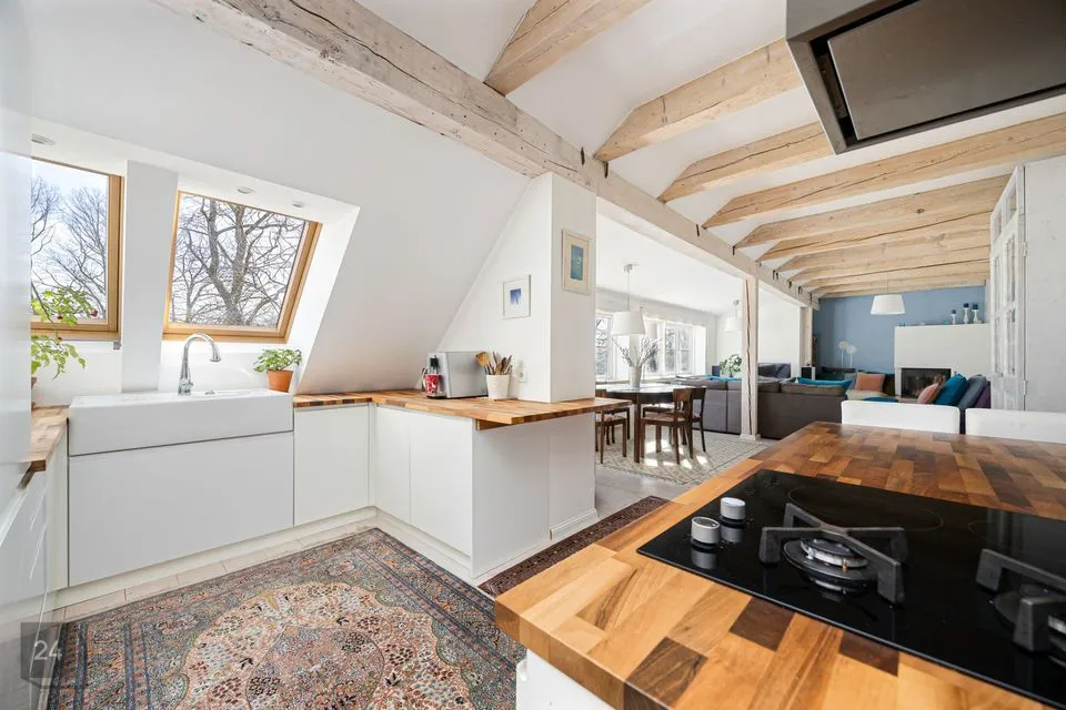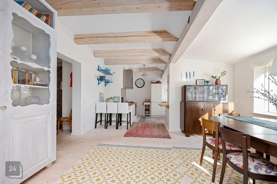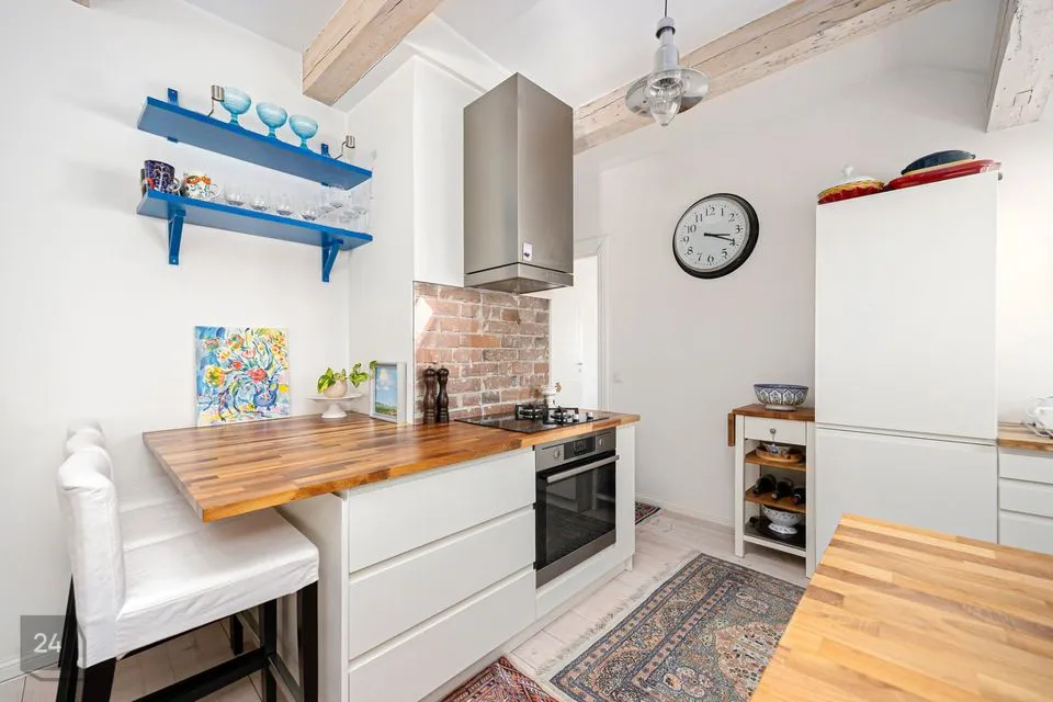 Korter on kapitaalselt renoveeritud. Õlitatud heledad laudpõrandad sobituvad kenasti ajaloolise tellisseinaga, mida on eksponeeritud, ning vanade originaaltaladega laes, mis heledamaks toonitud.