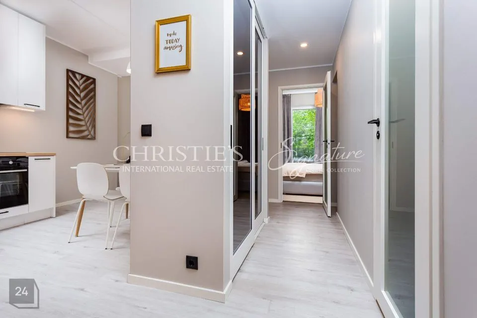 Müüdav korter on sihtotstarbelt mitteeluruum (külaliskorter), mis asub maja esimesel korrusel, vaatega hoovi. Korteri koosseisu kuulub esik, avatud köök-elutuba, magamistuba, dušhiruum-WC ja majapidamisruum. Rõdule (5m²) pääseb nii elutoast kui ka magamistoas. Rõdult saab nautida päevapäikest. Korter on varustatud fono-telefoniga.
