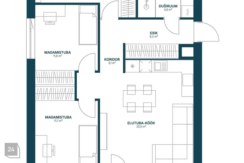 • Iga korter on varustatud mugavusjahutuse valmidusega, mis võimaldab soovi korral paigaldada jahutussüsteem ja tagada meeldiv temperatuur ka kuumadel suvepäevadel.