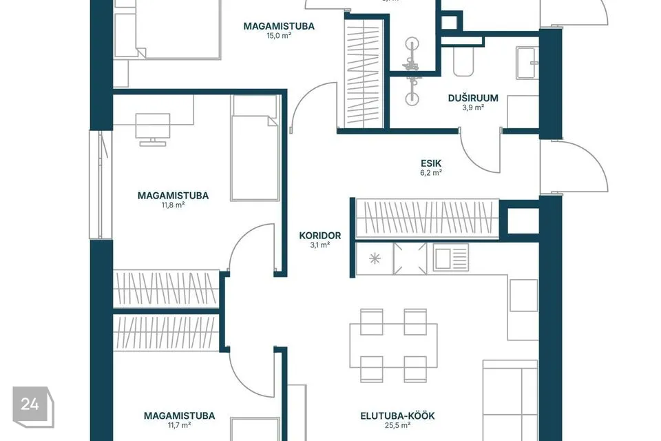 • Iga korter on varustatud mugavusjahutuse valmidusega, mis võimaldab soovi korral paigaldada jahutussüsteem ja tagada meeldiv temperatuur ka kuumadel suvepäevadel.