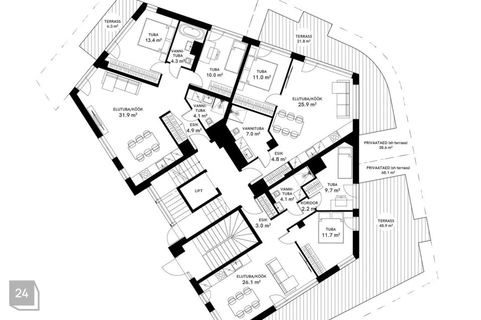 Hea on planeerida kodu ostmist, teades, et ei pea kaasama tippdisainerit. Koostöös PIN arhitektide ja sisearhitekt Birgit Jaanusega oleme selle töö juba ära teinud ja loonud kodud, mille iga detail on disainitud, kujundamaks sulle mõnusam elukeskkond. Majadesse on tekitatud hästi läbimõeldud ja loogilised ruumilahendused, võimaldades nii eraldi majapidamisruume, walk-in garderoobide lahendustega magamistube, mitme vannitoga, tualettruumiga kui ka saunaga kortereid. Korterite laed on 2,95 meetri kõrgused, luues ruumi palju avarust. Igal korteril on kas terrass, rõdu ja / või privaataed. Maast laeni aknad toovad ruumidesse rohkelt loomulikku valgust. Sisearhitekt on kokku pannud 4 eriilmelist viimistluspaketti, mille vahel ostja saab valida. Varajastel ostjatel on võimalik kaasa rääkida ka ruumiplaneeringus ning teha erilahendusi.