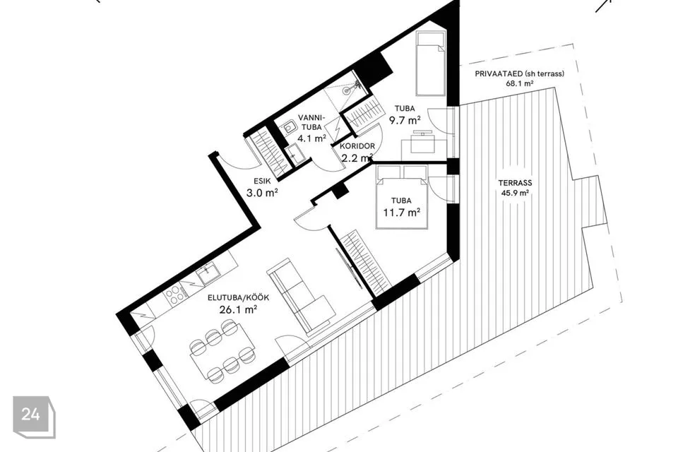 NIMELT SELLEL KORTERIL ON IMEPÄRANE LÕUNAPOOLNE PRIVAATAED KOOS KÕIGE SUUREMA TERRASSIGA!