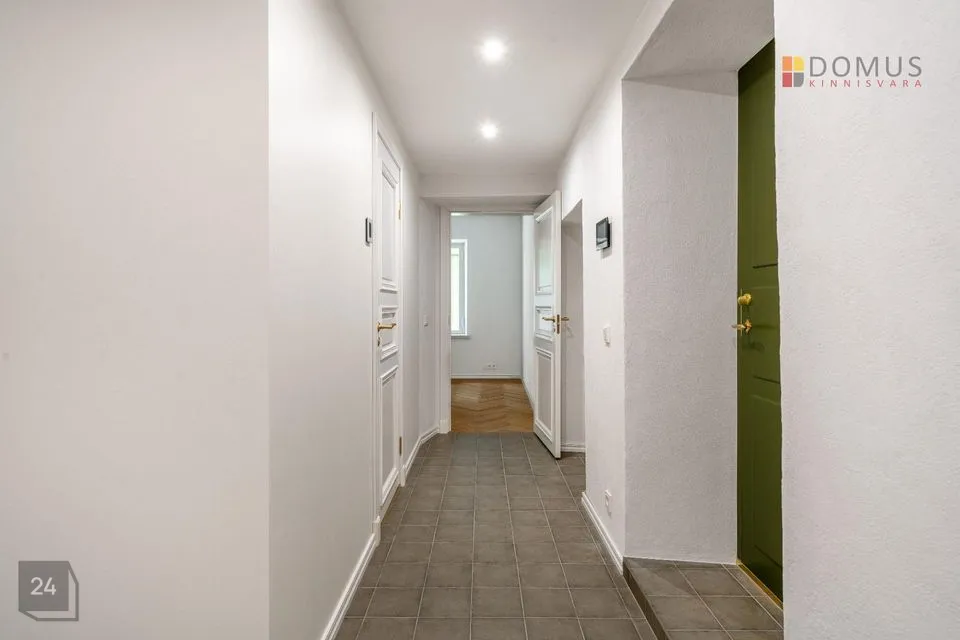 Ajaloolist arhitektuuri väärtustab korteris sobilik siseviimistlus, mida on lihtne kombineerida iga stiiliga! Rõhutasime maja ajastut kvaliteetsete materjalidega tänapäevases võtmes. Puitparkett kalasabamustris ja ehisdetailidega keraamilised plaadid vannitoas. Korteri seinu katab samuti looduslik materjal - lubikrohv, mis jätab kergelt struktuurse lõpptulemuse ja on omaette vaatamist väärt.