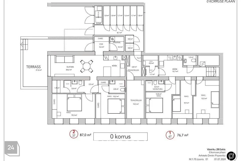 • Küte lokaalse gaasikatla baasil, mis asub hoone tehnoruumis.